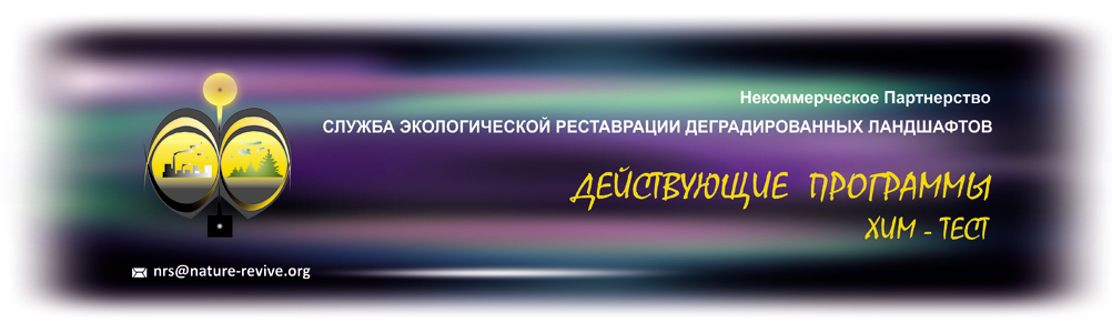 Технически и методически обеспеченная, но “вечно-спящая” программа, в силу того, что руководитель Шен Екатерина Валерьевна, взвалившая на себя нагрузку делопроизводства, связана по рукам и ногам отчётностью и сопряжёнными с ней проблемами. Однако, без этой Программы организация обойтись не может, ибо регулярно сталкивается с необходимостью определения экологического состояния обследуемых территорий. Поэтому её “будят” по мере надобности. История проекта “Хим-Тест” проста: выпускники Менделеевки, вошедшие в состав Партнёрства в 2003 году, по завершению стажировки, используя современные методики, разработали эффективную систему экологического тестирования деградированных ландшафтов. Программа оснащена современным лабораторным оборудованием: стационарным спектрофотометром, дозиметром - радиометром, рН-метром и прочими необходимыми атрибутами. Корреспондируется с программами Церападус, Флора-Декор, Практическая нооценология и Nature-Revive-Expedition.